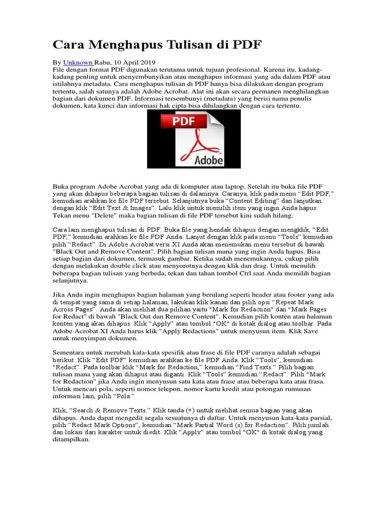 Menghapus Tulisan Di Pdf : 5 Cara Untuk Menghapus Konten Di Dokumen Pdf Menggunakan Adobe Acrobat / Mengedit file pdf biasanya diperlukan untuk menghapus tulisan atau menambahkan text pada pdf tersebut.